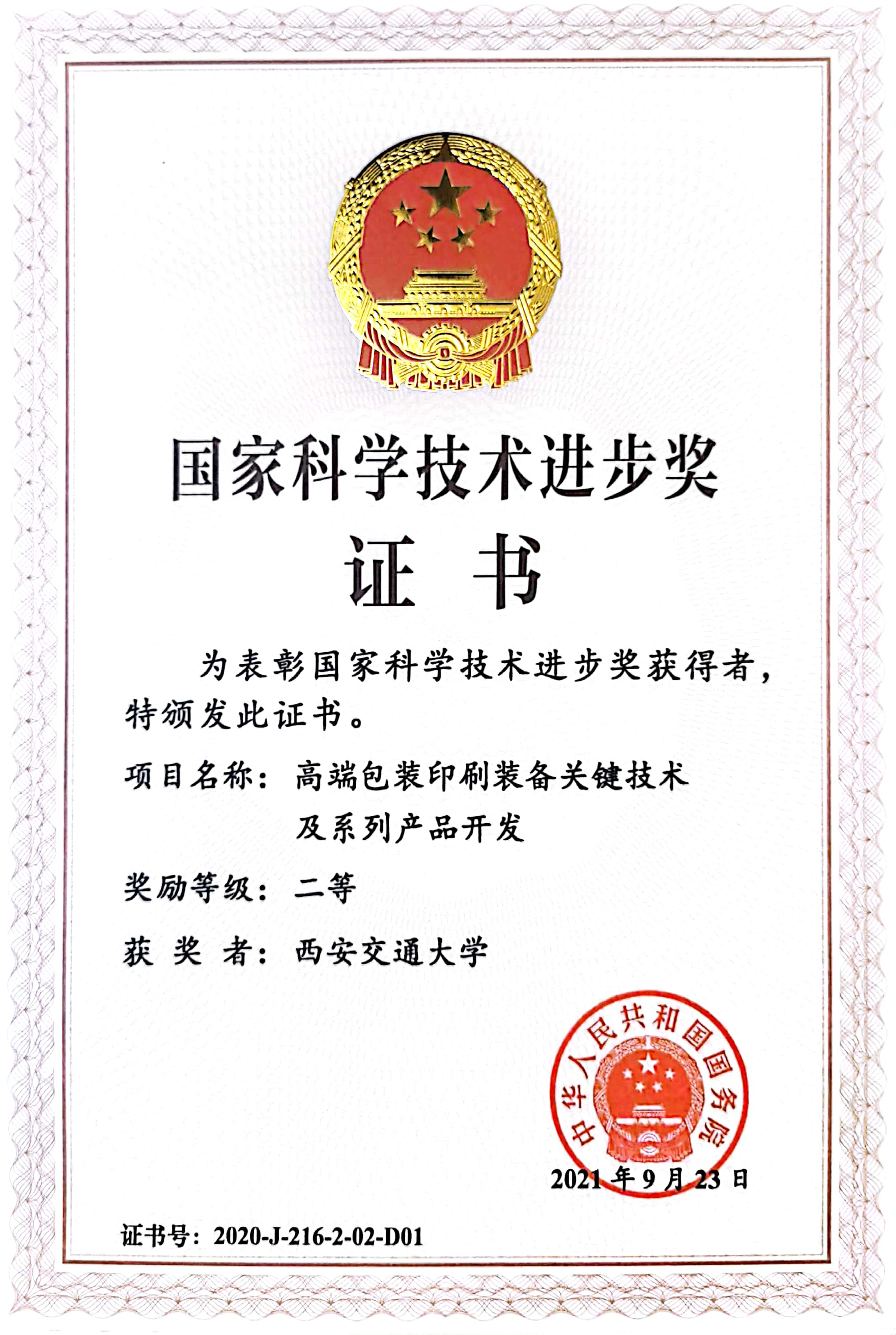高端包装印刷装备关键技术与系列产品,2020年度国家科技进步二等奖,国务院 -