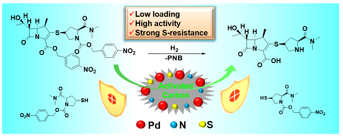 Yue Feng Li, Feengmei Xiong, Jiangmei Yan, Zhaowen Wang, Tao Hong, Zhixiang Zhang, Yu Li, Xinli Jing, Pd/N, S co-doped activated carbon as a highly-efficient catalyst for the one-pot synthesis of meropenem, Catalysis Science and Technology, 2023, 13, 1686-1695.