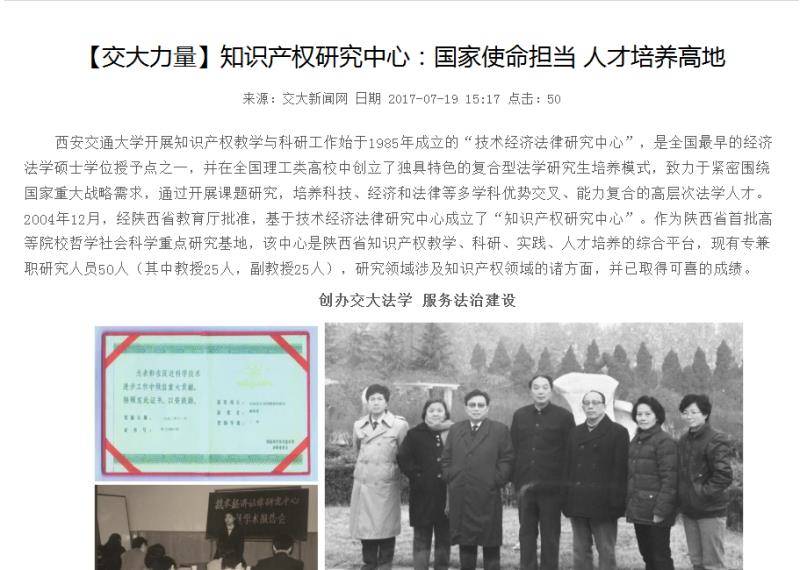 华体会 iOS下载开展知识产权教学与科研工作始于1985年成立的“技术经济法律研究中心”,是全国最早的经济法学硕士学位授予点之一,并在全国理工类高校中创立了独具特色的复合型法学研究生培养模式,致力于紧密围绕国家重大战略需求,通过开展课题研究,培养科技、经济和法律等多学科优势交叉、能力复合的高层次法学人才。2004年12月,经陕西省教育厅批准,基于技术经济法律研究中心成立了“知识产权研究中心”。作为陕西省首批高等院校哲学社会科学重点研究基地,该中心是陕西省知识产权教学、科研、实践、人才培养的综合平台,现有专兼职研究人员50人(其中教授25人,副教授25人),研究领域涉及知识产权领域的诸方面,并已取得可喜的成绩。