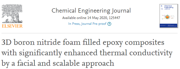 该研究工作以“3D boron nitride foam filled epoxy composites with significantly enhanced thermal conductivity by a facial and scalable approach”为题发表在国际化学工程领域顶级期刊Chemical Engineering Journal(实时影响因子10.83),该工作第一作者为西安交大微电子学院博士生徐信未,通讯作者为汪宏教授。华体会 iOS下载为第一单位,南方科技大学与美国宾州州立大学为本文合作单位。该工作得到深圳市科技计划(孔雀团队和基础研究计划)、深圳市工程实验室项目的支持。