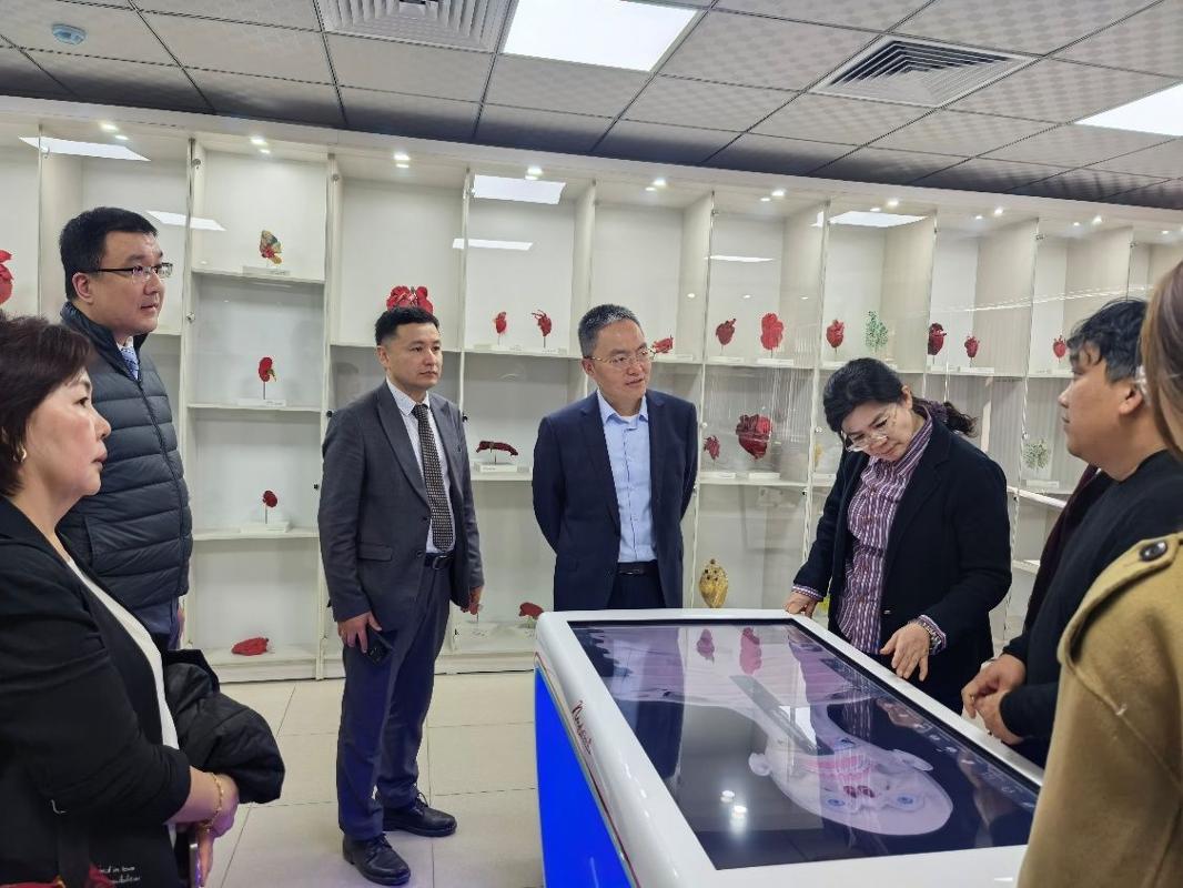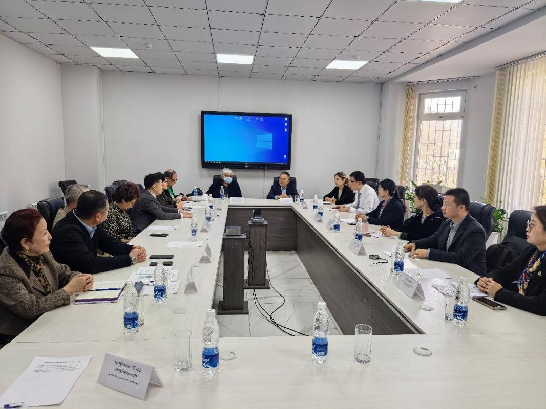 在吉尔吉斯斯坦国际大学医学院举行的专题座谈会上,双方开展了对接交流。理事会主席、国际医学院院长、吉尔吉斯斯坦国家科学院院士阿瑟尔别克·艾达拉利耶夫,教学与行政事务副院长阿丽娜·穆萨克兹,国际事务副院长马克萨特别克·阿纳尔巴耶夫,科研事务副院长埃尔米拉·阿克玛托娃,教务长古丽米拉·阿西莫娃,以及附属楚河州立医院副院长阿尔滕别克·埃斯特别索夫等参加座谈。