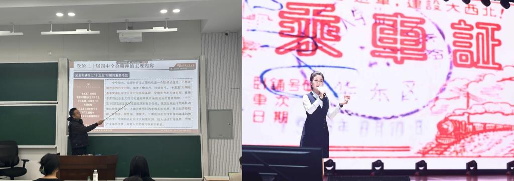 坚持“以讲发声”,形成“菜单式+场景化”宣讲课程体系。通过“菜单式点课、精准化配送”模式,围绕党的二十大和二十届历次全会精神以及抗战胜利80周年等重要历史节点,策划推出8组主题课单、150余节宣讲课程,开展各类宣讲230余场,覆盖1.2万人次,有力推动了党的创新理论“飞入广大师生间”“飞入寻常百姓家”。学生微宣讲团6人获评全国高校青年宣讲联盟“金牌讲师”、5门课程入选“精品课程”。