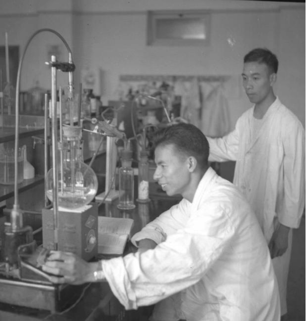 1958年,钱慰宗在实验室开展科研工作。