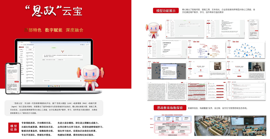 深度融合AI前沿技术与思政领域专业知识,建设新一代思政教育数智化平台“思政”云宝,依托“思政大模型(LLM)+检索增强(RAG)+智能代理(Agent)”三层架构,构建核心工具链,赋能思政教育全链条,打造精准、动态、闭环的智慧思政解决方案,推动学校思政教育工作迈向智能化、精准化、体系化新高度。基于本校真实辅导员的形象特征进行3D建模,打造AI辅导员角色,处理学生提问并生成专业解答内容。系统化梳理学校学生管理相关政策文件,打造覆盖学生全生命周期需求的AI辅导员系统。培育特色应用品牌,“思政”云宝、西迁精神虚拟仿真课程等入选数字化教育典型案例和国家级一流课程,提供了可复制的“交大方案”。