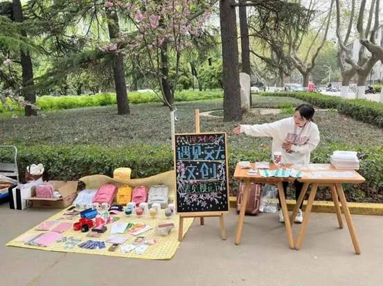 首次亮相的樱花文创集市中,“遇见交大文创”邀请心灵手巧的你现场手作樱花书签,参与“春”字创意摄影。教育基金会为你挑选了许多樱花小礼品,还有丰厚的抽奖活动,线上线下,福利多多。