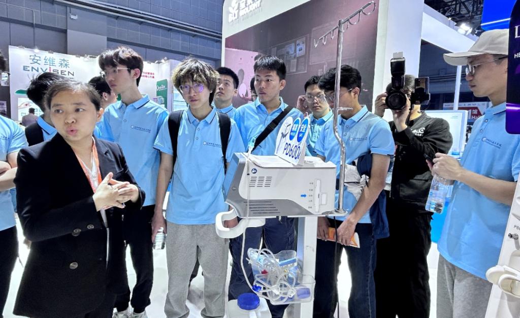 在深圳鲲为科技有限公司和广东宝莱特医用科技股份有限公司展台,产品经理向同学们介绍了不同产品在不同场景中使用的技术和亮点,同学们收获颇多。
