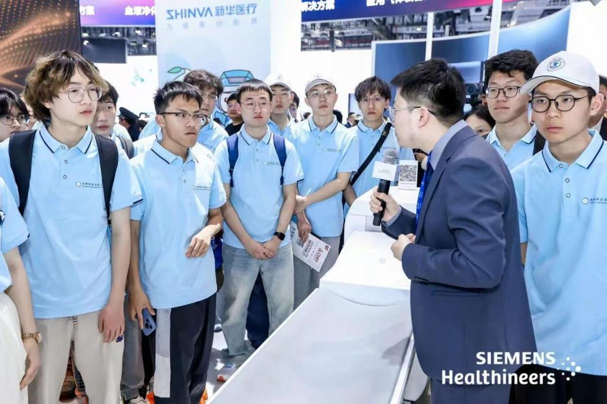 在西门子医疗系统有限公司展台,西门子医疗大中华区总裁、94级医电校友王皓与同学们进行了亲切交流,并介绍企业最新的双源光子计数CT技术以及国产赋能的创新产品,鼓励在校学生瞄准行业前沿,在生物医学工程领域贡献青春力量。