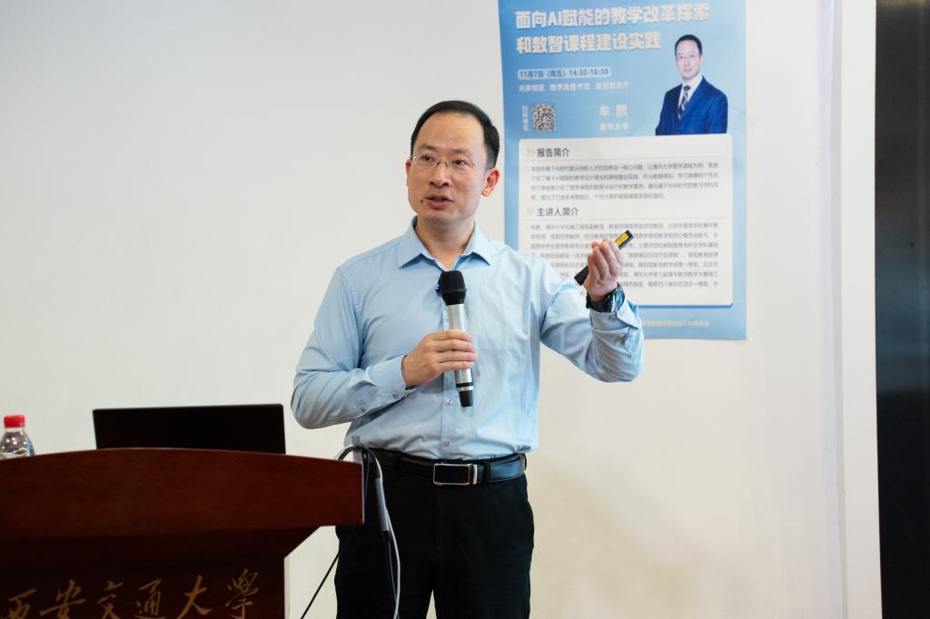 11月7日,由教师教学发展中心联合机械学院、工程制图名师工作室、教育部工程图学教学指导分委员会西北地区工作委员会(简称“西北图工委”)共同主办的教学报告会召开。西安交大校友、清华大学牟鹏副教授应邀作主题报告,分享AI赋能教育背景下工程图学课程的教学改革探索与智能化课程建设实践。华体会 iOS下载工程制图名师工作室负责人郑镁教授,西北图工委顾问、西北工业大学孙根正教授,主任、华体会 iOS下载许睦旬教授,副主任、西北工业大学叶军副教授等出席报告会。来自甘肃、宁夏、陕西等地区的103位教师参与学习研讨,共同探索人工智能与图学课程建设的融合路径。教师教学发展中心副主任张健主持活动。