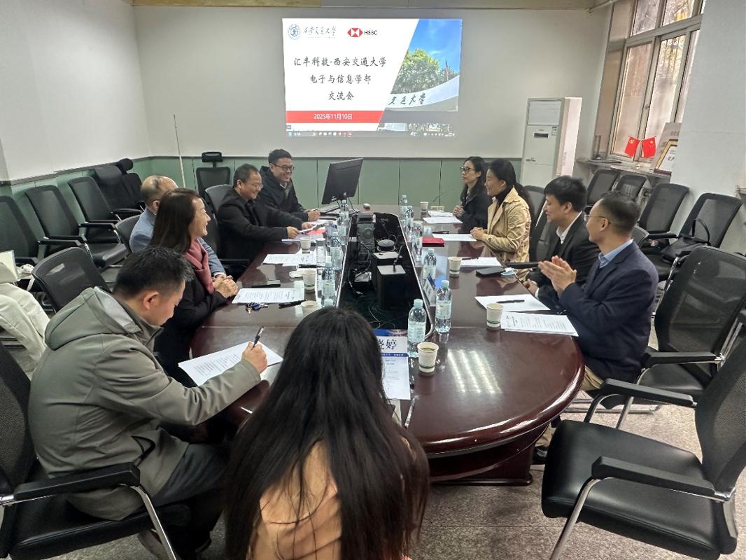 中国科学院院士、电信学部主任管晓宏,电信学部党委书记梁莉,软件学院副院长王晨旭及师生代表,汇丰国际财富管理及卓越理财解决方案首席信息官、汇丰国际财富管理及卓越理财首席架构师夏勇、汇丰国际财富管理及卓越理财架构及API部高级副总监赵栓、汇丰科技西安分公司运营总监苏媛等参加交流。会议由软件学院院长王伟主持。