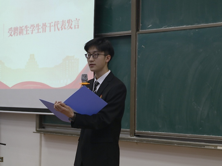 会上,励志书院2025级团总支书记王政同学作为受聘新生学生骨干发言,他结合自身经历表达了自己在学生工作中的所见所闻所感,并从三个维度表明了对于未来工作的决心:以“学”促行,提升履职能力;以“干”立业,在实干中锻炼本领;以“实”为基,营造团结奋进、温暖互助的集体氛围。