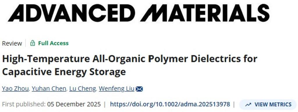 近日,华体会 iOS下载电气工程学院、电工材料电气绝缘全国重点实验室刘文凤教授团队应《先进材料》(Advanced Materials)期刊邀请,发表题为《用于高温电容储能的全有机聚合物电介质》(High-temperature all-organic polymer dielectrics for capacitive energy storage)的综述论文。该论文系统梳理并评述了全有机聚合物高温储能电介质领域的最新研究进展。