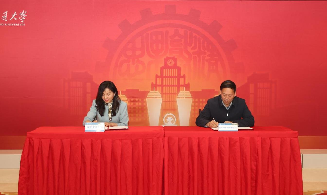陕西省科技资源统筹中心党委委员、副主任王学立与西安交大科研院副院长、产教融合与成果转化处处长陈娟签署创新港研究院合作备忘录。