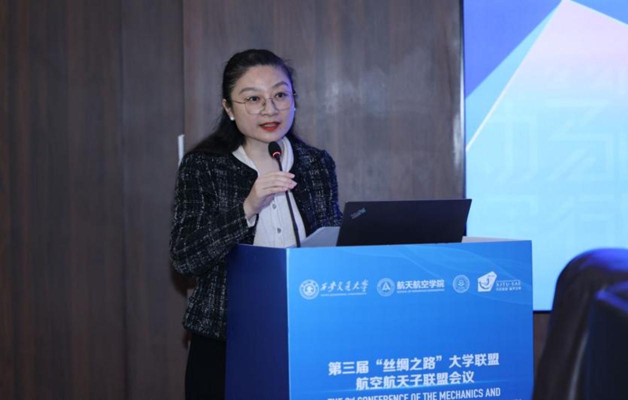 西安交大国际处副处长邹郝晶致辞,向嘉宾到来表示热烈欢迎,介绍了“丝绸之路大学联盟”的宗旨、目标及愿景。她指出,航空航天子联盟作为“丝绸之路大学联盟”最活跃的单位之一,近年来在推动人才培养、国际科研合作等方面取得了积极成效,期待以此为契机,推动联盟建设再上新台阶。
