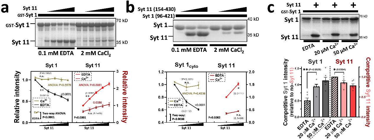 Ca2+抑制Syt11与Syt1的竞争性膜结合