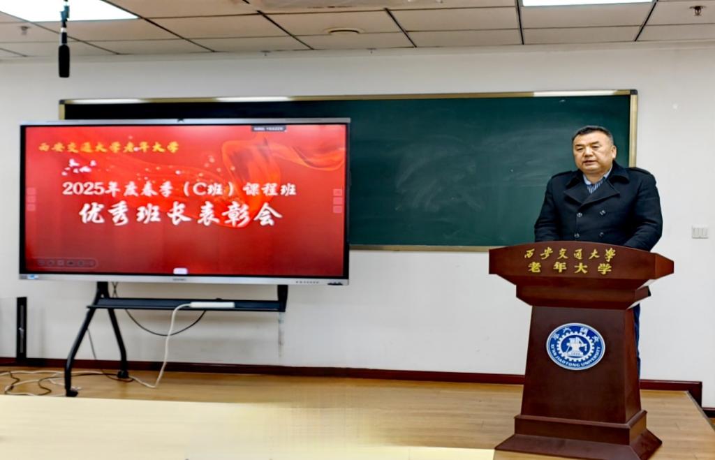李超常务副校长作总结讲话。他感谢全体班长的辛勤付出,并向受表彰班长表示祝贺。随后,他向与会人员通报了学校2025年度工作情况,指出过去一年在继续教育学院的领导下,在全校师生的共同努力下,学校各项工作成果显著,在政治建设、思想建设、组织建设、文化建设、宣传与信息化等方面均取得突出成绩,获得上级多个部门的充分肯定。他希望班长们在未来继续努力,共同为学校与国家老年教育事业贡献力量。他表示,学校将持续完善班长培养机制,进一步发挥班长作用,推动老年教育高质量发展。