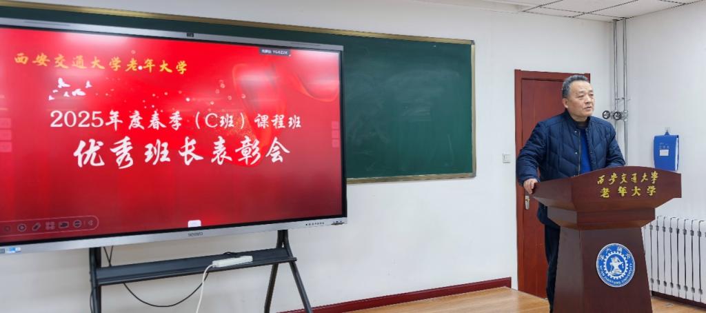 强自力副校长宣读了表彰决定。常务副校长李超,副校长张西亚、强自力及办公室主任贾亚新共同为优秀班长颁发荣誉证书。