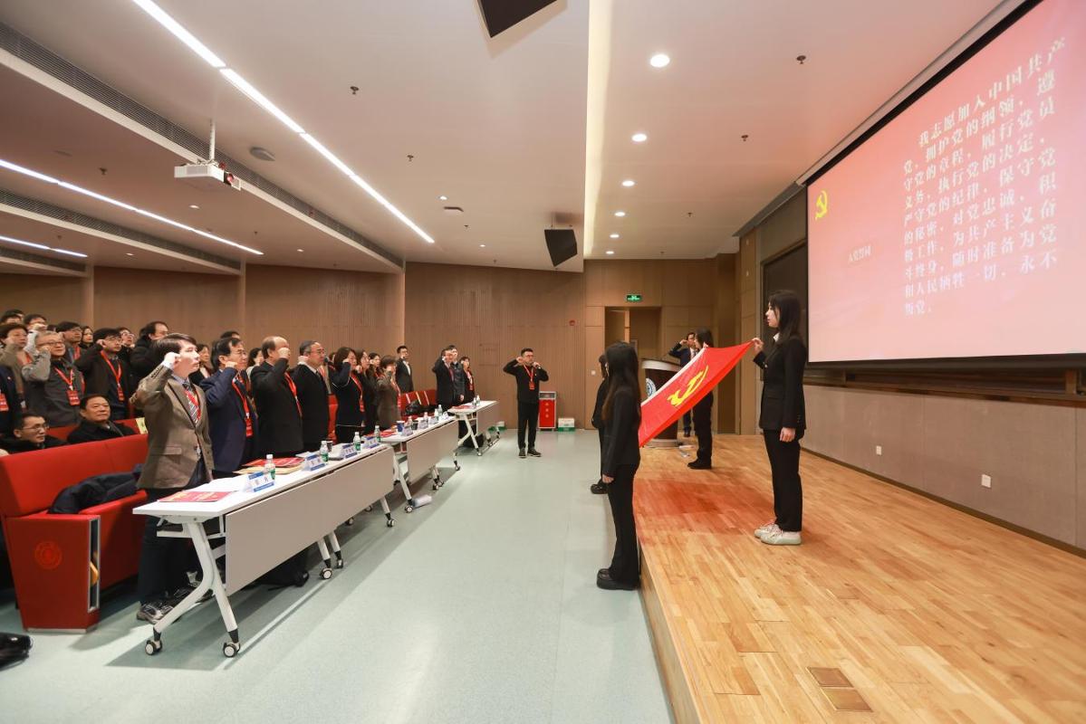 大会在庄严的国歌声中拉开帷幕。全体党员面向党旗,音乐教育中心主任方小笛同志带领大家重温入党誓词,铿锵誓言彰显了人文师生坚定不移听党话,矢志不渝跟党走的政治自觉和使命担当。