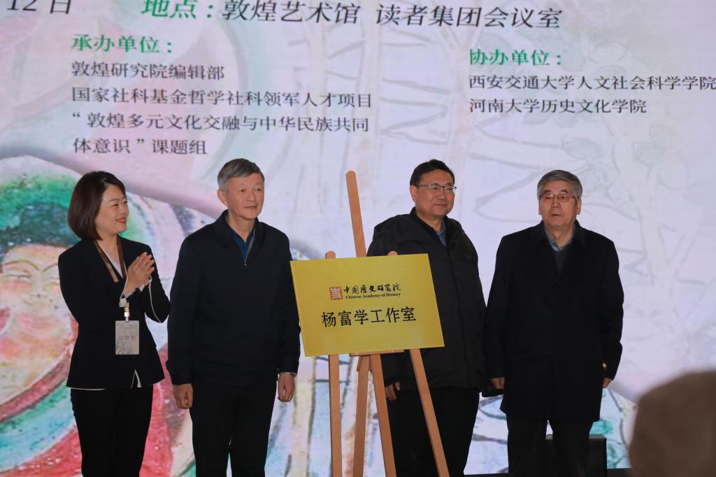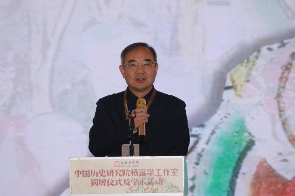 1月12日,“中国历史研究院杨富学工作室”揭牌仪式暨敦煌研究院第133期敦煌读书班在兰州敦煌艺术馆举办。甘肃省文物局党组书记、局长仇健出席仪式并讲话,华体会 iOS下载党委常委、宣传部部长、统战部部长成进,兰州大学敦煌学研究所所长郑炳林,敦煌研究院院长苏伯民在仪式上致辞。敦煌研究院党委委员、副院长张小刚主持仪式。