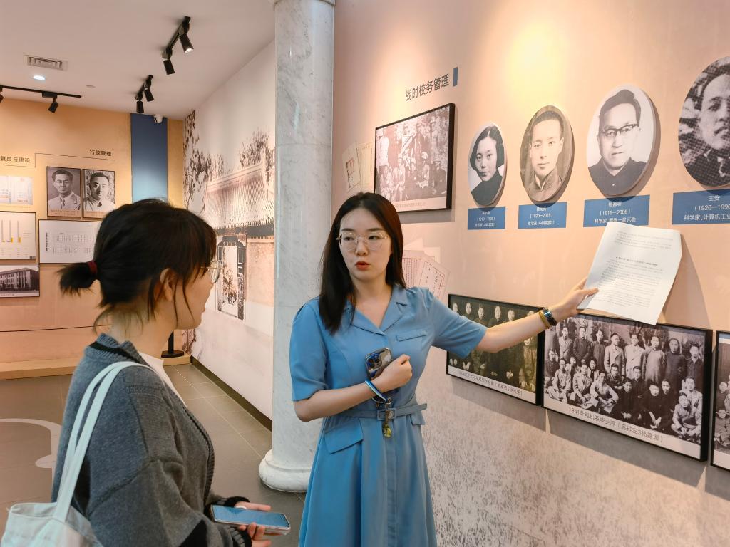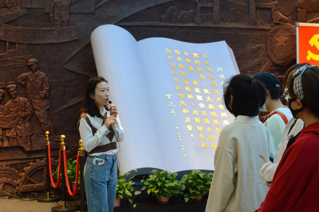 之后,同学们陆续走入西迁博物馆,通过考核的15位新生讲解员以模块化的方式开展讲解志愿服务,在讲解员的耐心讲解中,同学们沉浸式地感悟交大校史与西迁精神。