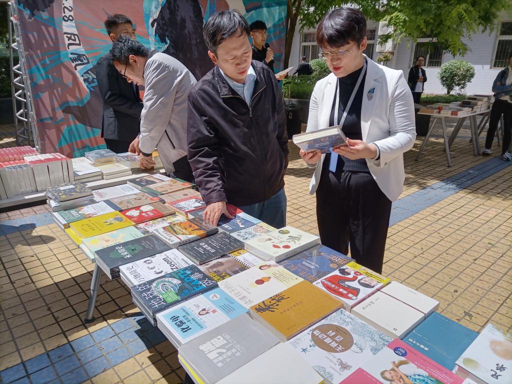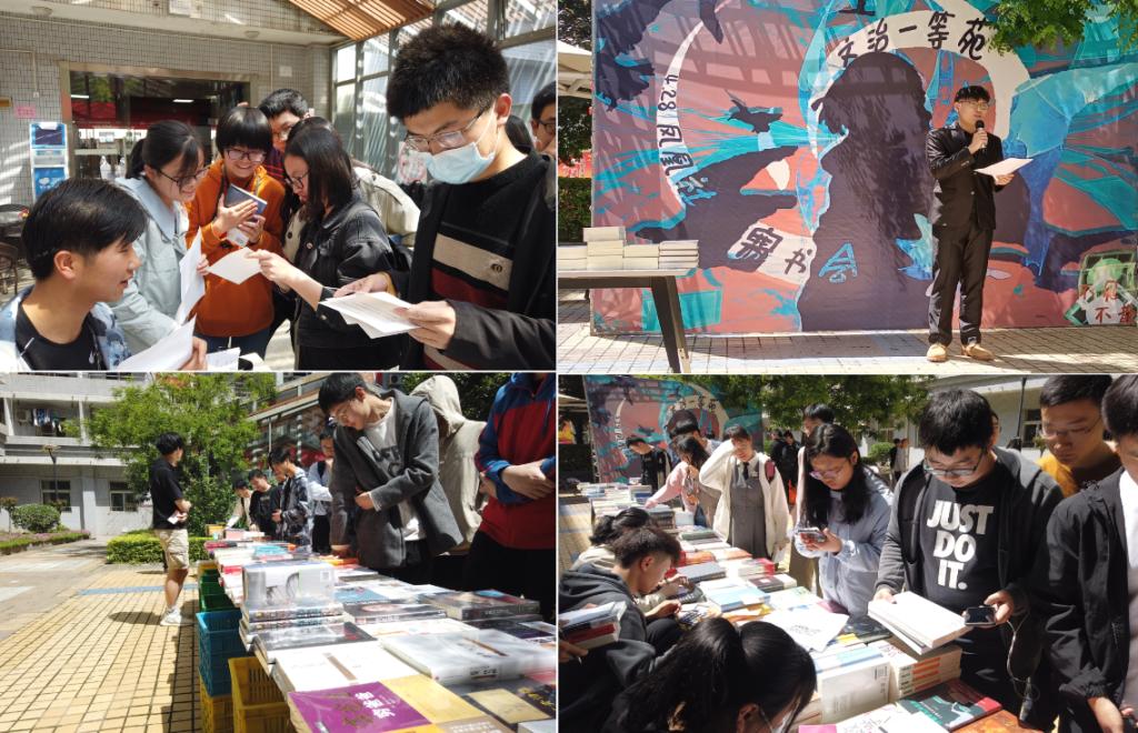 宣讲结束后,迎来了同学们期待的优惠购书环节。凤凰社和文治书院学生会于赛书会前一个月精心准备,通过问卷调研的方式了解同学们期待购买的书籍,并携手西安汉唐书城和书院一起,为同学们送上了丰厚的优惠。在书院老师及同学们的精心组织下,大家在文治一等苑入口通过党史答题获取积分,换取3.5-5折赛书卡进行购书。