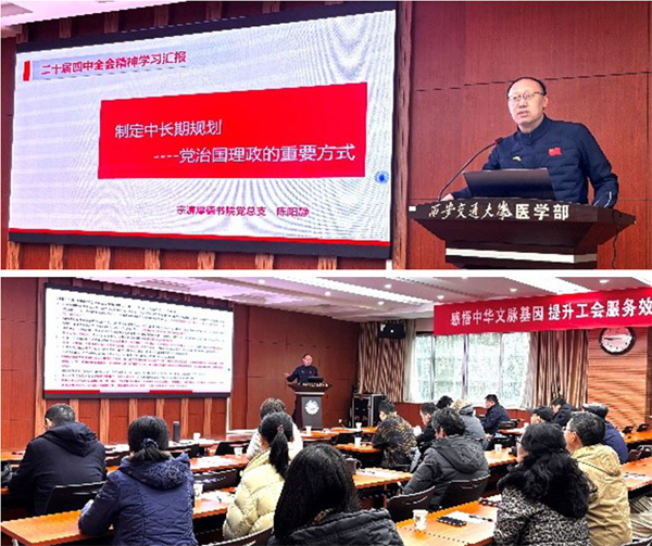 活动伊始,陈晨副书记作动员讲话。陈晨副书记代表医学部党委对工会长期以来服务一线职工、推动医学发展方面的工作给予肯定,强调工会干部不仅要精通业务,更要提高政治站位,深刻领会党的二十届四中全会精神,将其与工会实际工作紧密结合,期待大家以此次学习为契机,感悟中华文明绵延不断的基因密码,将其转化为服务与创新的内生动力,在单位发展与教职工成长中发挥更大桥梁纽带作用。