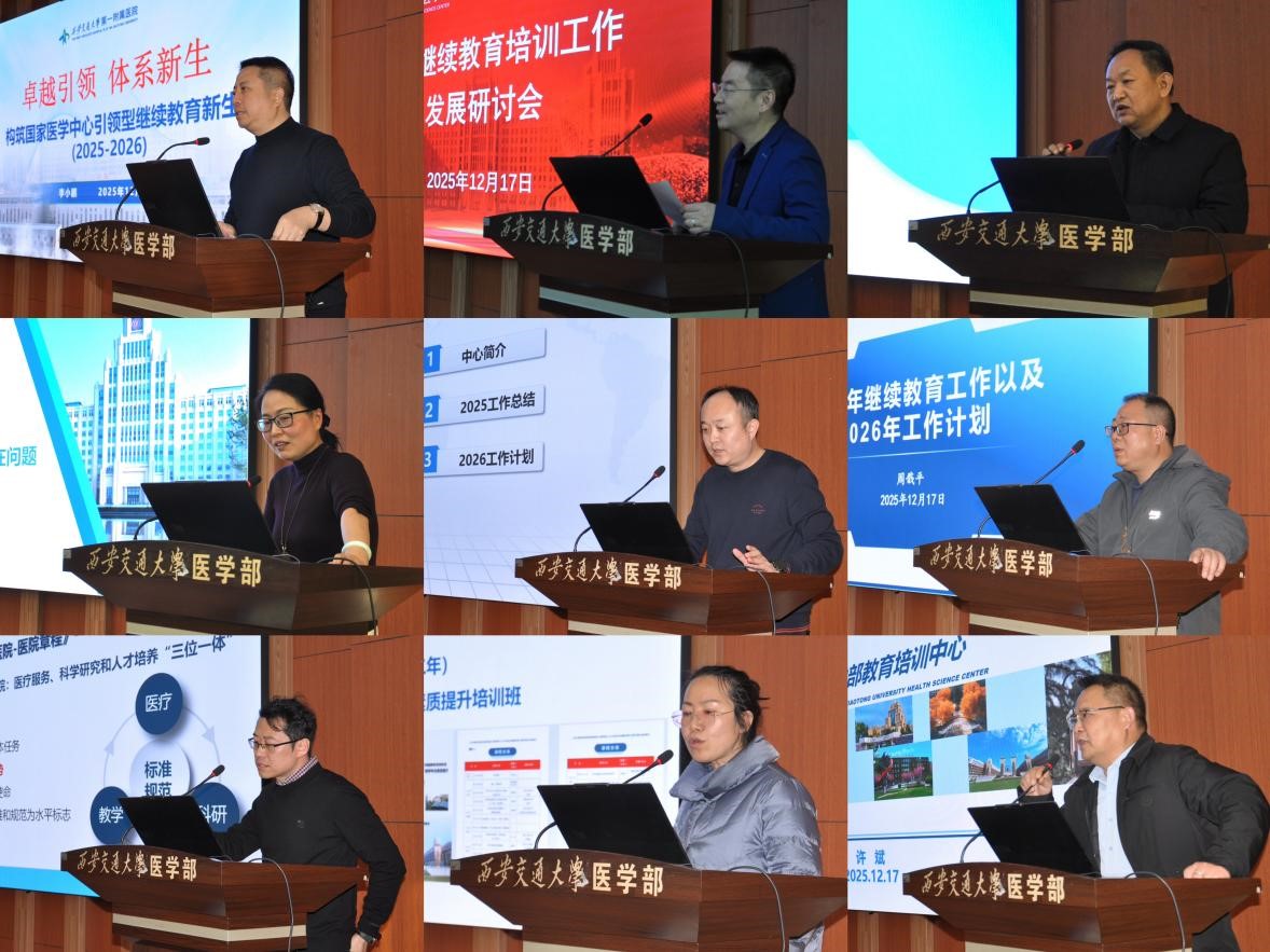 医学部教育培训中心及“七院一系”详细汇报了2025年继续教育工作开展情况、培训工作当前面临问题及2026年工作计划,全面梳理过往工作成效,明确未来继续教育工作发展重点。在交流讨论环节,与会人员围绕新时期医学继续教育、职业培训与能力提升所面临的机遇与挑战,针对体系建设、模式创新、质量提升与资源整合等核心议题,深入研讨,凝聚发展共识。