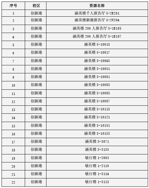 首批开放两校区校级会议室共40间(创新港22间,兴庆校区18间),详细资源列表请见附件。