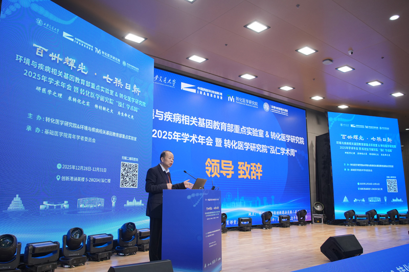 2025年12月28日,环境与疾病相关基因教育部重点实验室&转化医学研究院举办2025年学术年会暨转化医学研究院“泓仁学术周”启动仪式在中国西部科技创新港隆重召开。会议由环境与疾病相关基因教育部重点实验室和转化医学研究院主办,基础医学院青年学者委员会承办。大会以“研医学之理 求转化之实 传创新之火 为生命之光”为主题,基础医学院/转化医学研究院院长张保军教授主持活动。